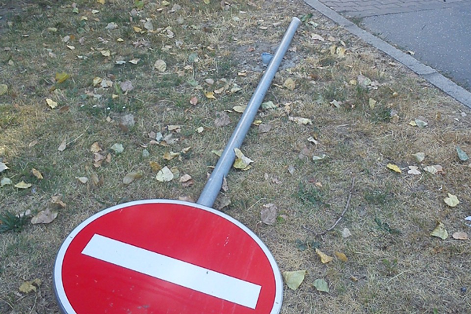 V Ružinove na Medzilaboreckej ulici z večera do rána zmizlo päť dopravných značiek. Išlo o prácu vandalov, ktorí však značky neukradli, ale „len“ pohodili vedľa na trávnik. Niektoré odpílili, iné vykopali. Pohodené vedľa na tráve ležali dva týždne, teraz už stoja na svojich miestach.
