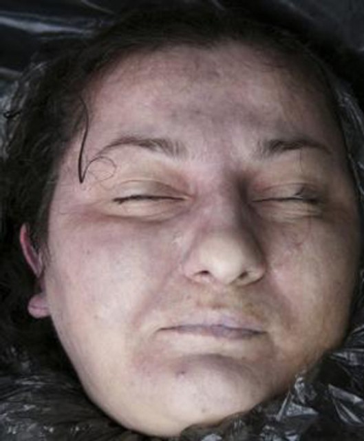 Žena mala približne 40 až 50 rokov, vysoká bola asi 165 centimetrov, silnejšej postavy a mala dlhšie farbené vlasy čierno-fialovej farby. Na sebe mala oblečenú hnedú vetrovku s kapucňou, fialový sveter, modré rifle, na nohách mala obuté čierne kožené čižmy.
