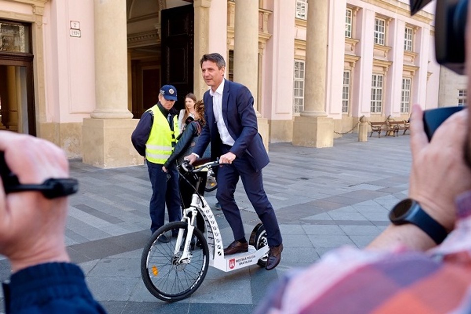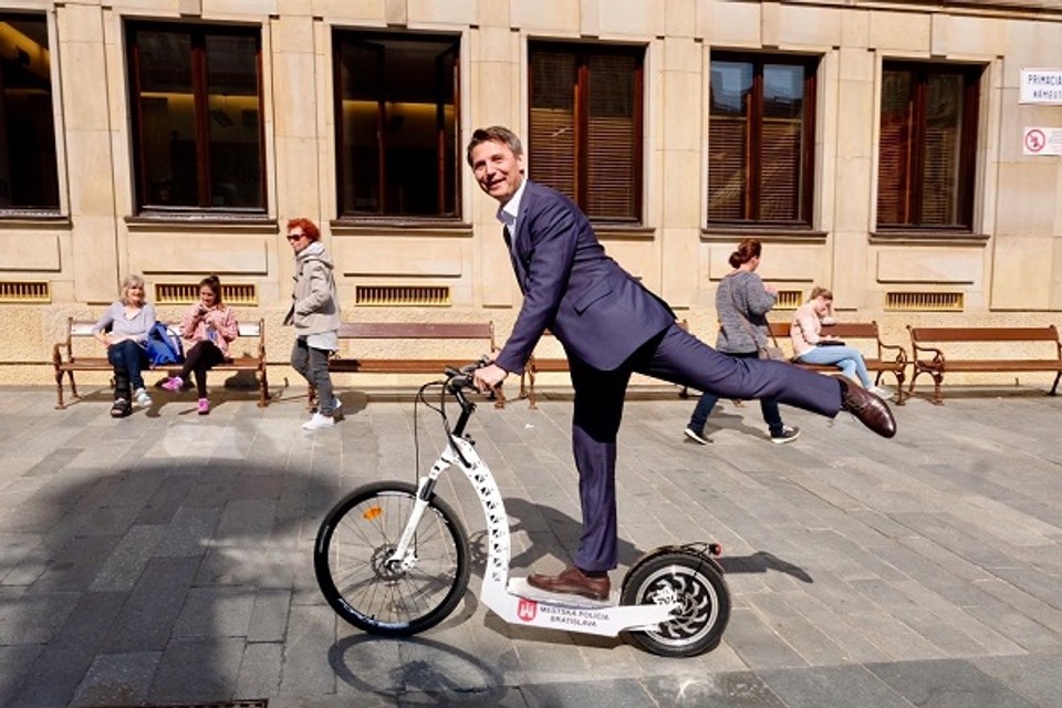 O tom, že bratislavskí mestskí policajti budú využívať na presun Starým Mestom elektriké kolobežky, sme vás už informovali. Dnes ich policajtom oficiálne odovzdal primátor Ivo Nesrovnal (na fotografii).