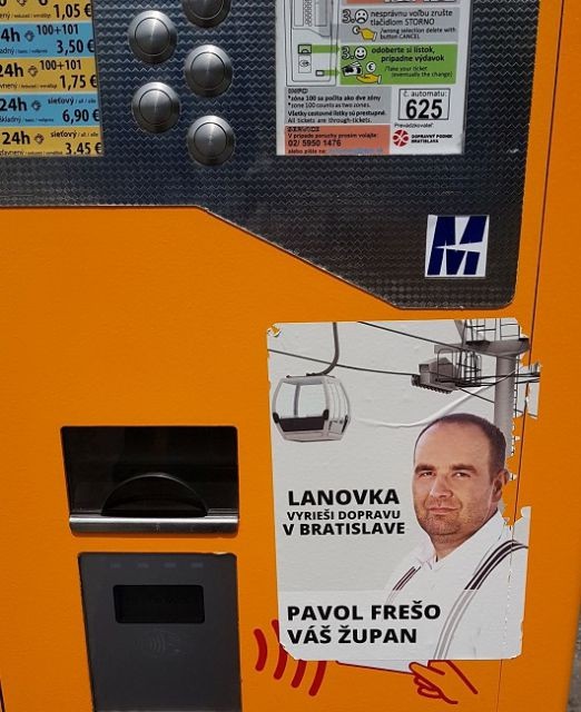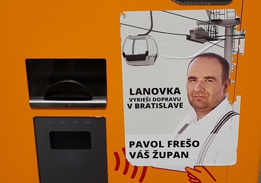 Viacero nových zrekonštruovaných automatov na cestovné lístky do bratislavskej MHD sú polepené plagátikmi s portrétom bratislavského župana Pavla Freša a nezmyselnými heslami. Predseda BSK sa od vylepovania plagátov dištancuje a tvrdí, že ide o negatívnu kampaň jeho konkurencie.