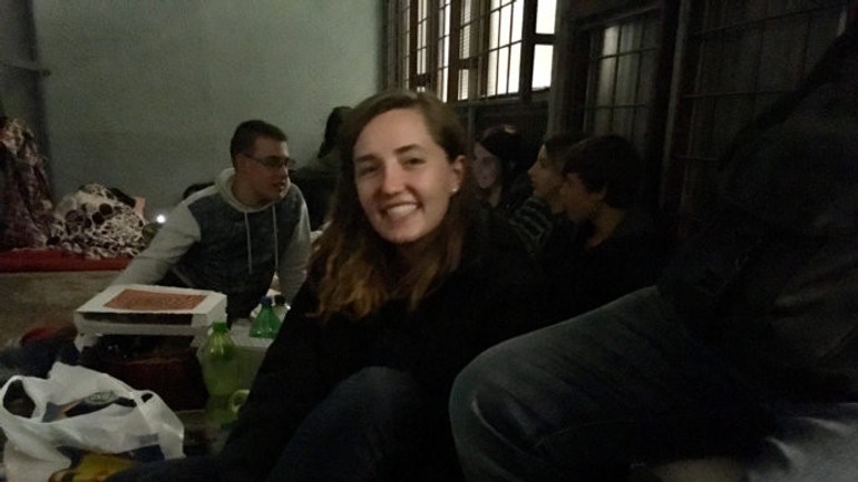 Takto to vyzeralo dnes ráno, keď sa študenti dozvedeli, že sa ich lektorka dostane dovnútra: