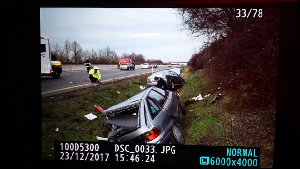 K dopravnej nehode malo podľa polície dôjsť pri zjazde do Senca, kde sa zrazili tri autá. Tento úsek je momentálne neprejazdný. Polícia odporúčala preto vodičom použiť ako obchádzku starú Seneckú cestu. Vodiči však hlásili tvorbu kolón aj na tejto ceste.