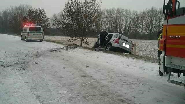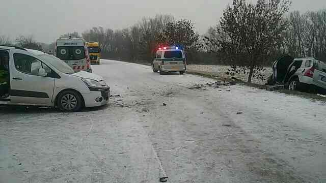 Dnes krátko pred 8.00 hodinou ráno došlo k nehode smerom zo Senca do Sládkovičova. Vodiči zrejme nezvládli jazdu zasneženou cestou a čelne sa zrazili.
