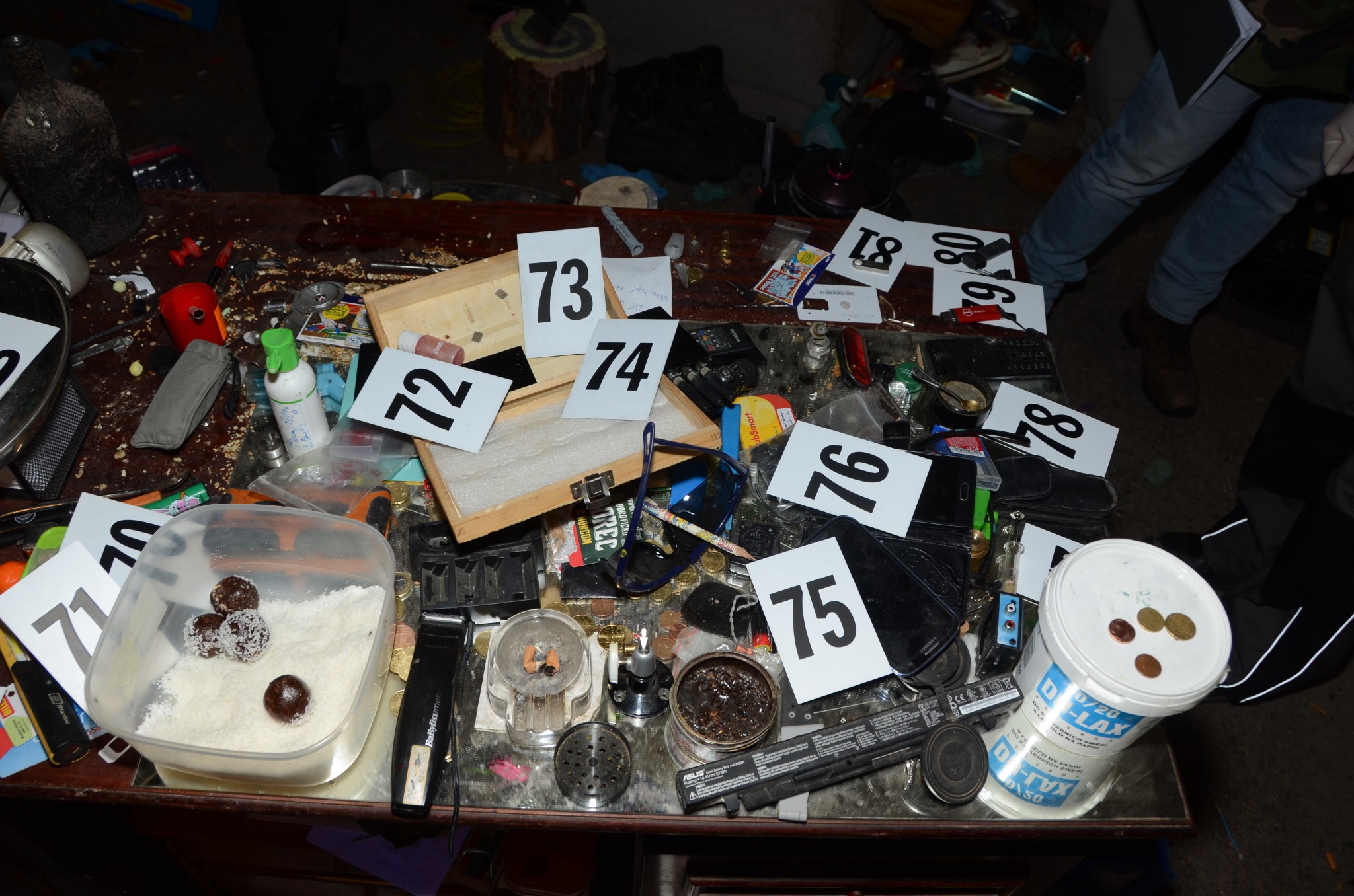 Policajti na základe príkazu sudcu Okresného súdu v Bratislave III vykonali v jednom z rodinných domov v obci Chorvátsky Grob domovú prehliadku, v rámci ktorej zaistili viaceré stopy dôležité pre ďalšie trestné konanie. Okrem iného väčšie množstvo béžového kryštalického materiálu nachádzajúceho sa v rôznych plastových, sklenených nádobách resp. plastových vreckách, ako aj sušený rastlinný materiál nachádzajúci sa v plastovom vrecku s tlakovým uzáverom. Celkovo bolo v rámci prehliadky zaistených viac ako 140 stôp, pričom z tohto počtu bolo expertíznemu skúmaniu podrobených s prihliadnutím na časové hľadisko len 6 stôp.