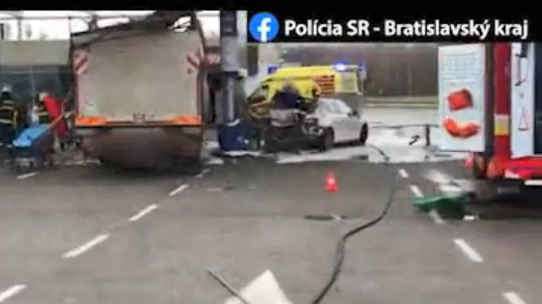 "Podľa doterajších informácií vodič nákladného motorového vozidla pri vchádzaní na čerpaciu stanicu z doposiaľ nezistených príčin narazil do ďalšieho nákladného auta a následne do osobného motorového vozidla. V dôsledku nárazu bolo osobné vozidlo odrazené do stojanu čerpacej stanice," uviedla polícia z Bratislavského kraja na sociálnej sieti, kde zverejnila aj video zo zásahu záchranárov a hasičských zložiek: