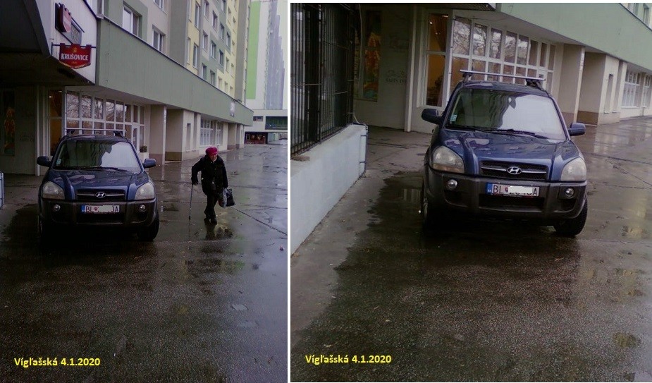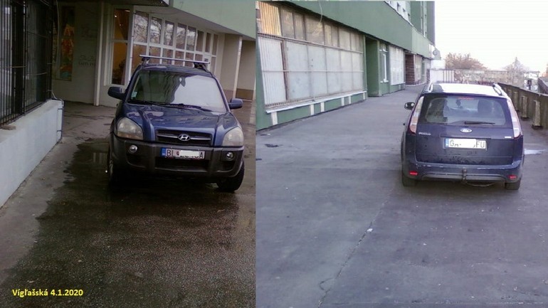 "Vedome si mýlia tieto priestory s verejným parkoviskom a verejnou cestnou komunikáciou. Ako napríklad tieto dve osobné vozidlá v uvedených dňoch. Bolo by prospešné sa ich opýtať za akým účelom tu celý deň parkovali. Tu pomôže len častá kontrola zo strany polície..." myslí si pán Gemerský, ktorý spomínané automobily odparkované na terasách aj odfotografoval...