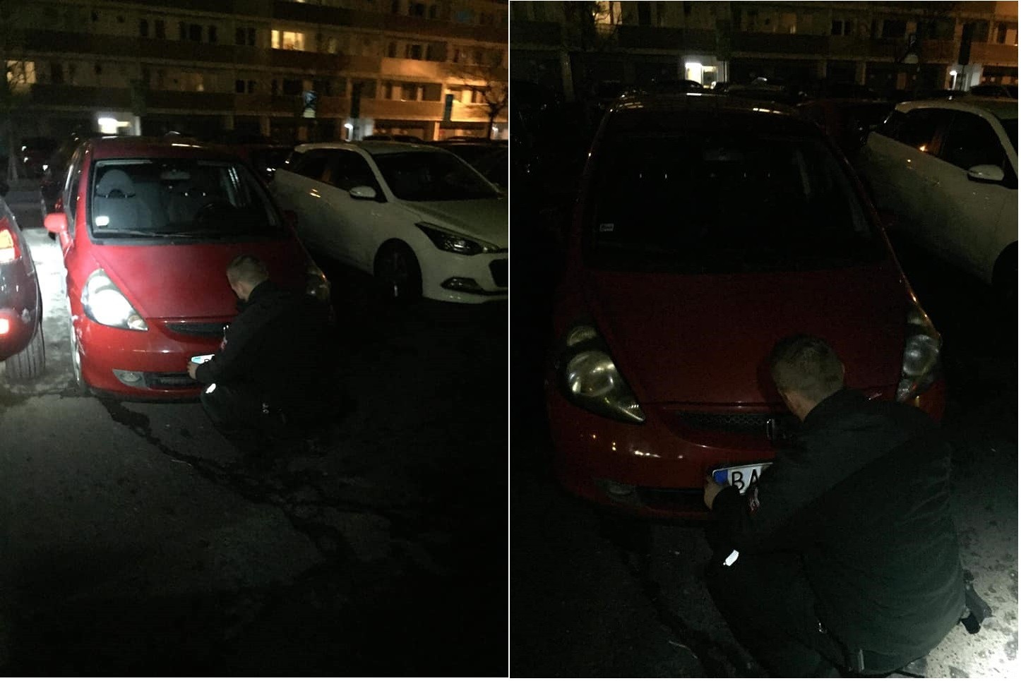 Policajnému výjazdu predchádzal príspevok jedného z členov spomínanej FB skupiny, ktorý napísal: "Dobrý večer prajem, ospravedlňujem sa, nechcem rušiť, ale neviem či to riešiť, resp. kam to mám napísať. Pred časom ste dávali na FB príspevok, kedy červená Honda nabúrala nejaké auto, zobrali jej ŠPZ a majiteľ si nakreslil na papieri nové značky, na ktorých jazdí.. Teraz som to auto akurát videl, má aj vpredu aj vzadu ŠPZ, ale každá je úplne iná a ani jedna nepatrí tomu danému autu. Posielam aj foto, parkuje aktuálne na parkovisku pred Centrumom v Karlovej Vsi."
