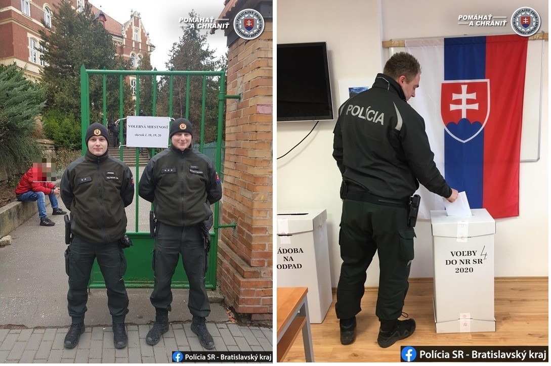 Na pokojný priebeh Parlamentných volieb 2020 dohliada dnes zvýšený počet policajných hliadok aj v Bratislavskom kraji - policajti sú od skorého rána v blízkosti volebných okrskov, kde zotrvajú až do skončenia volebného moratória. Polícia tiež vykonáva hliadkovú činnosť na sídle Štátnej komisie pre voľby a kontrolu financovania politických strán na Drieňovej ulici v Bratislave. Okrem peších hliadok dohliadajú na verejný poriadok v hlavnom meste aj pohotovostné motorizované jednotky a príslušníci kriminálnej polície. "Policajti aj napriek svojej práci nezabúdajú na svoju občiansku povinnosť, príkladom je aj náš kolega z Pezinka, ktorý využil svoje volebné právo počas dnešnej služby," uviedli administrátori stránky Polícia SR - Bratislavský kraj.