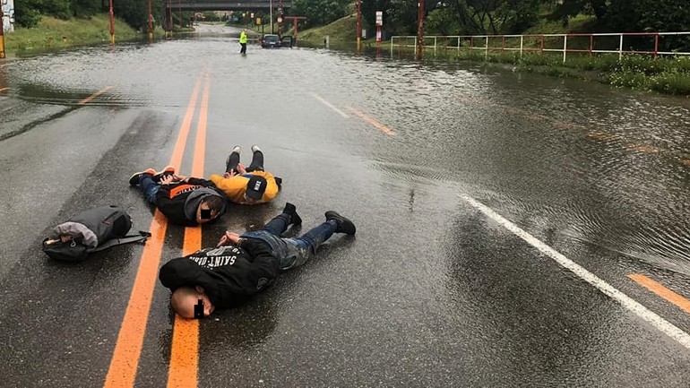 O zadržaní trojice mužov pri veľkej kaluži na Gagarinovej ulici infomovala najskôr na svojej stránke na sociálnej sieti skupina HAKA-Hľadá sa auto, krádeže automobilov, ktorá sa venuje pátraniu po ukradnutých autách. "Podľa zatiaľ neoverených informácií naši unavení občania, ktorí ležia na zemi, ukradli auto, ktoré už aj stihli utopit. Žiaľ, majiteľka vozidla je v našej skupine a krádež svojho vozidla potvrdila," informovala HAKA na sociálnej sieti.