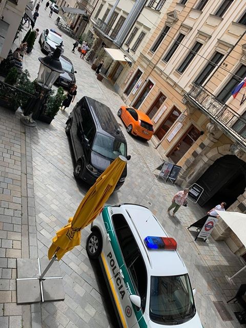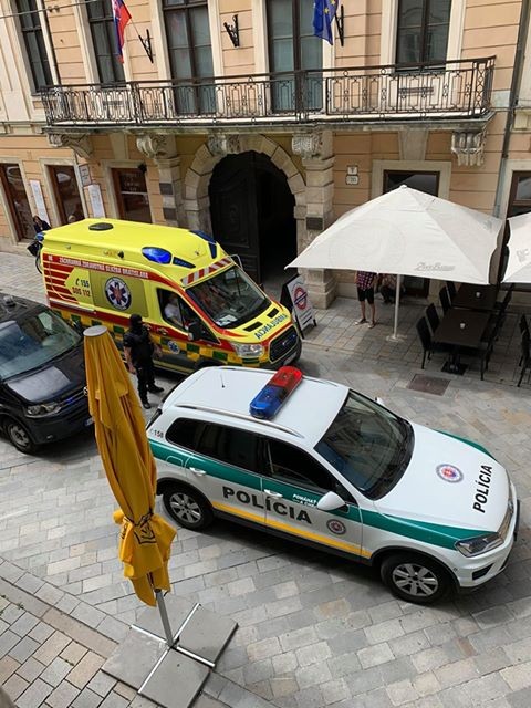 Do historického centra dorazilo krátko po dvanástej aj niekoľko policajných áut, vrátane členov špeciálnych jednotiek...