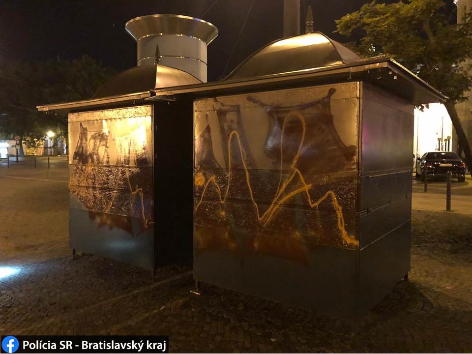 FOTO: Opitý Nemec posprejoval stánky na Hviezdoslavovom námestí - policajti ho vypátrali aj obvinili...