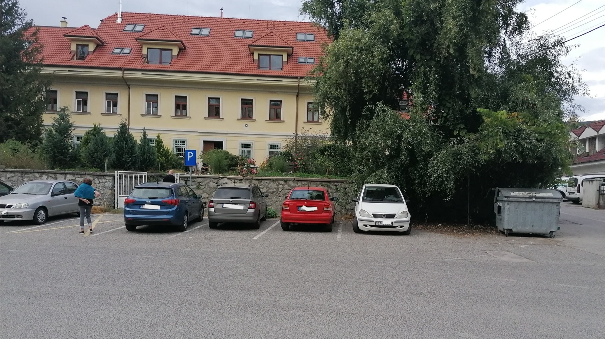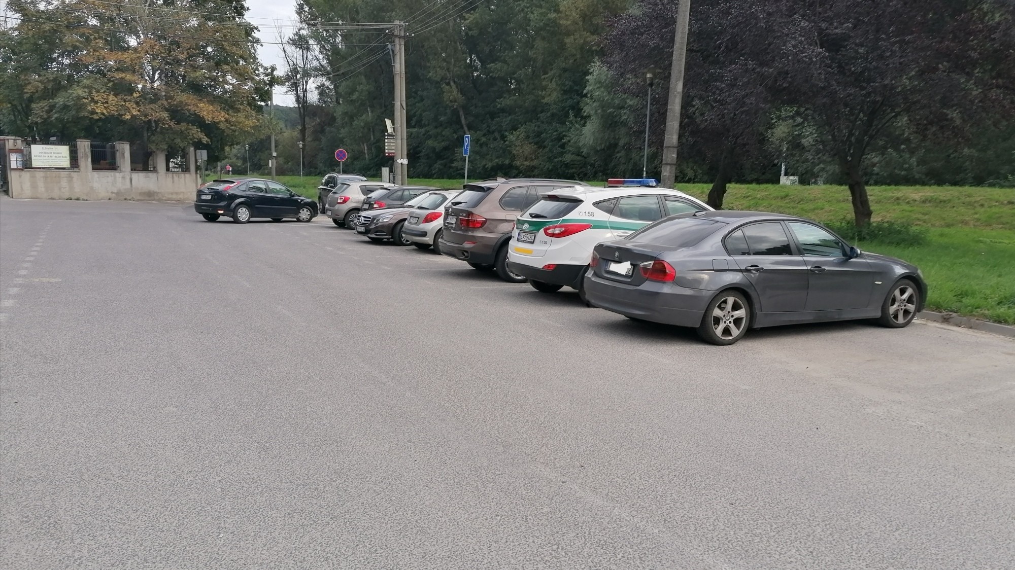 Ďalšie policajné auto parkovalo na parkovisku oproti spomínanému domu.