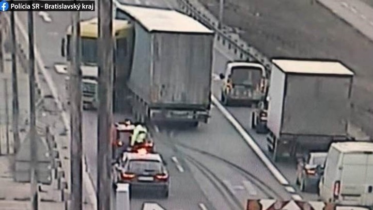 "Dnes krátko po 15:15 hod. došlo z doposiaľ presne nezistených príčin v úseku 63. km diaľnice D2 k nárazu nákladného motorového vozidla do zvodidiel. Z uvedeného dôvodu sú v súčasnosti dva jazdné pruhy v uvedenom úseku neprejazdné," informovali na sociálnej sieti bratislavskí policajti.