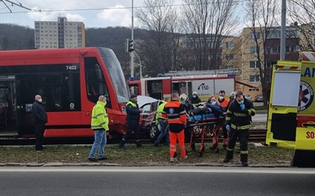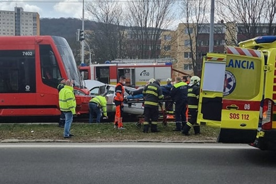 Nehoda v Dúbravke: Električka pred sebou tlačila osobné auto