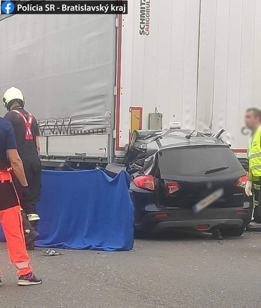 "Podľa doterajších informácií došlo z doposiaľ presne nezistených príčin k nárazu vozidla Suzuki Vitara do kamióna zn. Mercedes. Zrážkou utrpela pravdepodobne jedna osoba vo vozidle Suzuki zranenia, ktorým na mieste nehody podľahla," informoval nás bratislavský policajný hovorca Michal Szeiff.