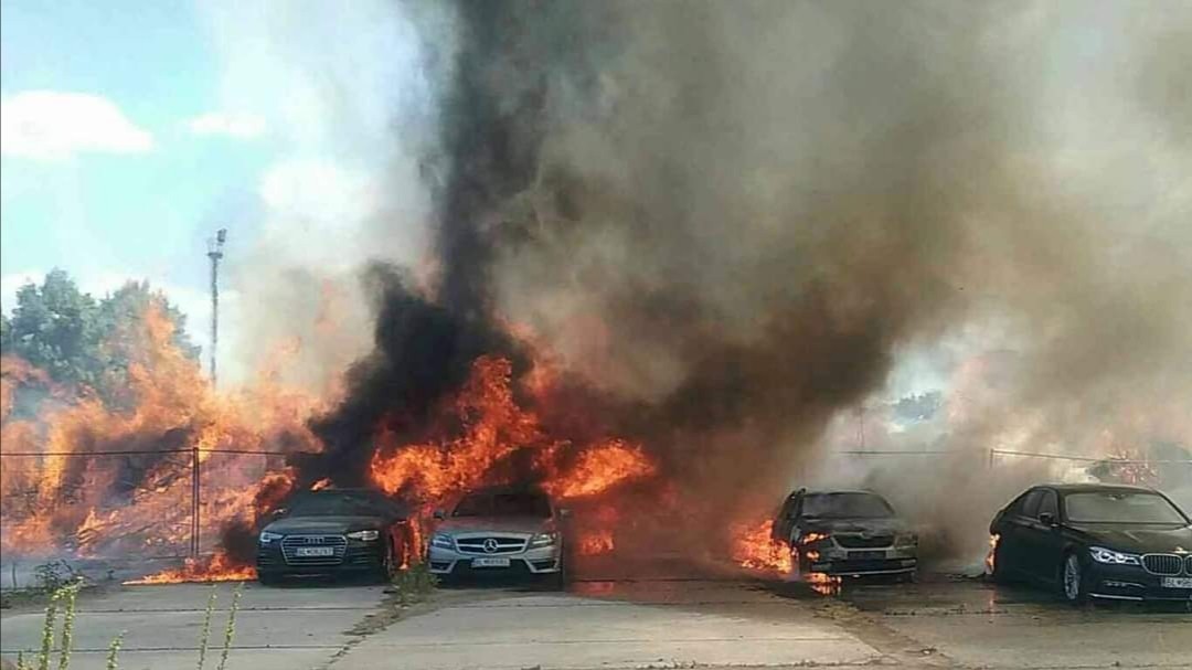 Horeli aj drahé autá na neďalekej parkovacej ploche...