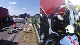 FOTO Vážna nehoda na diaľnici: Zrazili sa dva kamióny a dodávka
