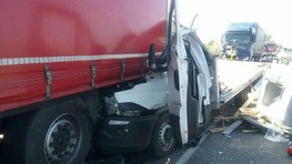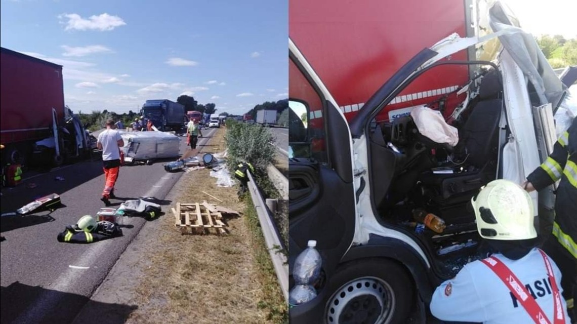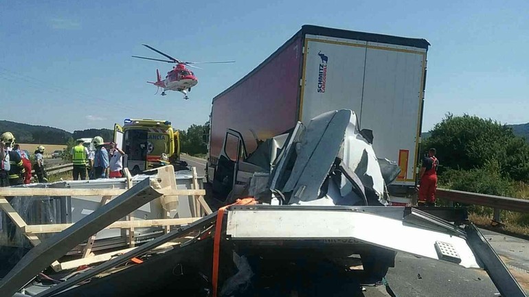 " Dnes v čase okolo 14:37 h došlo k vážnej dopravnej nehode na diaľnici D2 v smere od Stupavy do Bratislavy. Vodič motorového vozidla zn. Iveco narazil zozadu do kamióna, ktorý stál v jeho jazdnom pruhu. V dôsledku tohto nárazu ho odhodilo do vedľajšieho jazdného pruhu, kde došlo k stretu s ďalším kamiónom. Na miesto dopravnej nehody sa okamžite dostavili všetky záchranné zložky. Vodič motorového vozidla zn. Iveco utrpel ťažké zranenia, ktoré si vyžiadali prevoz do jednej z bratislavských nemocníc záchranárskym vrtuľníkom," upresnili podrobnosti nehody policajti.