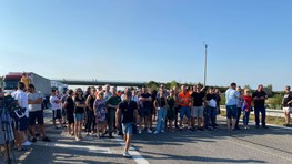 FOTO: Desiatky protestujúcich zablokovali hraničný priechod Čunovo - Rajka