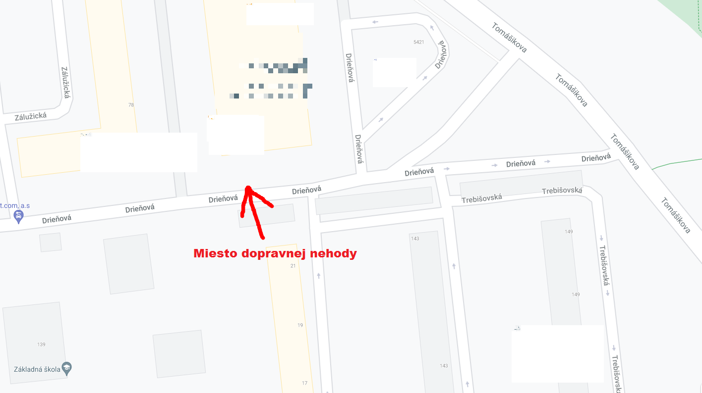 FOTO: Polícia hľadá svedkov alebo video nehody na Drieňovej, pri ktorej sa auto zrazilo s cyklistom