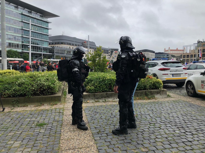 "V čase po 12.00 h vošlo viacero osôb z verejného zhromaždenia na Hodžovom námestí na vozovku v blízkosti zastávky MHD a pokúsili sa zablokovať premávku v smere na Štefánikovu ulicu. Poriadkoví policajti bezodkladne začali tieto osoby vyzývať, aby opustili priestor cestnej komunikácie a následne ich začali vytláčať na miesto mimo vozovky," uviedli bratislavskí policajti.