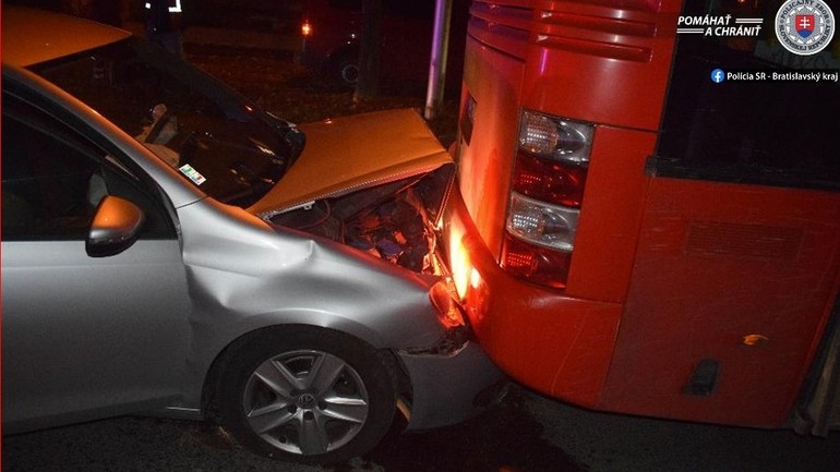 "K druhému prípadu došlo krátko pred 19.00 h na Riazanskej ulici, kde 33-ročná žena viedla osobné motorové vozidlo zn. Volkswagen, pričom narazila do pred ňou idúcim autobusom MHD. K zraneniu osôb nedošlo, u vodičky bola vykonanou dychovou skúškou nameraná hodnota 1,29 mg/l alkoholu vo vydychovanom vzduchu, čo predstavuje 2,69 promile!" informovali policajti na sociálnej sieti.