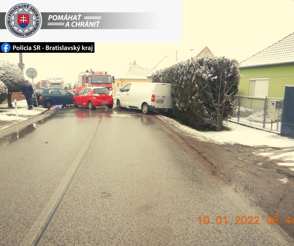 "V čase okolo 8.05 h viedla 35-ročná vodička motorové vozidlo značky Škoda Fabia v obci Kostolná pri Dunaji po hlavnej ceste smerom do obce Hrubá Borša. Z presne nezistených príčin pravdepodobne v dôsledku neprispôsobenia rýchlosti jazdy, stavu a povahe vozovky dostalo vozidlo na mokrej vozovke šmyk, narazilo do protiidúceho vozidla zn. Peugeot Expert a následne do ďalšieho protiidúceho vozidla značky Toyota Yaris," priblížili bratislavskí policajti na sociálnej sieti.