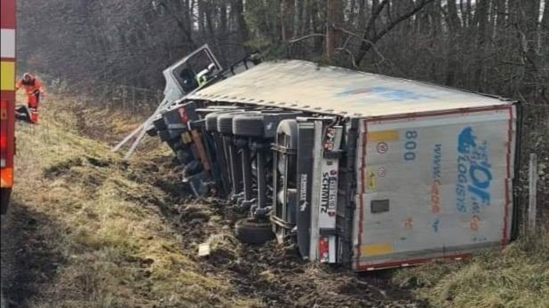 Na diaľnici D2 zišiel 52-ročný vodič kamióna prevážajúci uhlie z vozovky a následne sa prevrátil.