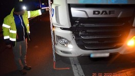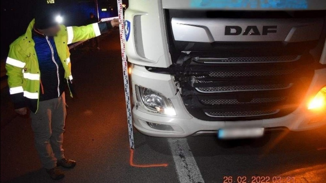 K druhej tragickej nehode došlo v sobotu (26.02.2022) o 00.55 h na diaľnici D2 v úseku 54 km (kataster obce Záhorská Bystrica)," Vodič nákladného motorového vozidla zn. DAF MPZ počas vedenia vozidla po diaľnici, spozoroval v krátkej vzdialenosti chodca. Čelnej zrážke s ním už zabrániť nedokázal. 41-ročný muž z okresu Komárno na mieste zraneniam podľahol. K zraneniu iných osôb nedošlo, prítomnosť alkoholu nebola u vodiča nákladného motorového vozidla dychovou skúškou zistená. Na nevyhnutne potrebný čas bola premávka z dôvodu dokumentovania okolností tejto nehody obmedzená a usmerňovaná dopravnými policajtmi a dopravným značením," priblížil Szeiff.
