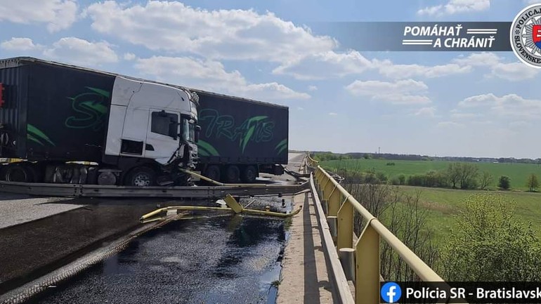 Nehoda: Kamión na D2 prerazil zvodidlá a prešiel do protismeru