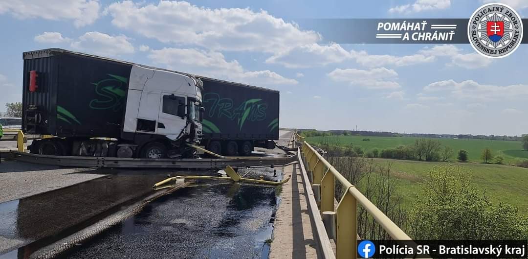 AKTUALIZOVANÉ Na diaľnici D2 v smere na Bratislavu dnes poobede vodič na nákladnom vozidle prerazil stredové zvodidlá a dostal sa do protismeru. Diaľnica bola niekoľko hodín neprejazdná.