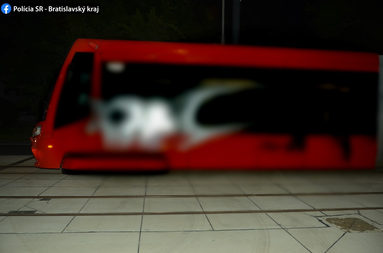!Počas jazdy električky MHD uvedeným úsekom dvaja doposiaľ neznámi páchatelia zatiahli ručnú brzdu na električke, vystúpili z nej a sprejom striebornej farby nastriekali na bočnú stranu električky nápisy vo veľkosti cca 2m,"spresnil policajný hovorca Szeiff. Dodal, že z miesta následne utiekli preč. Škodu na vozidle MHD bola vyčíslená približne na 1.300 eur.