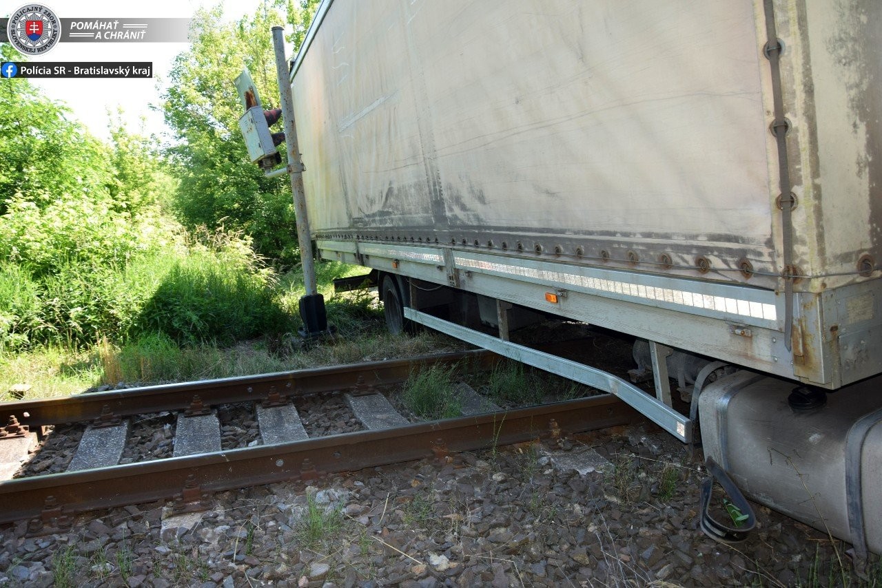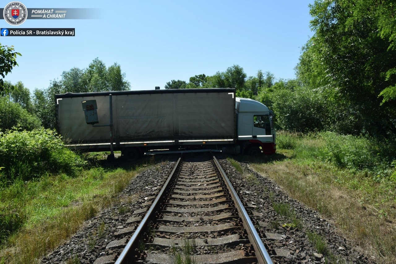Muž v nedeľu (12.06.2022) krátko po 08.00h ukradol z areálu jednej z firiem v obci Zohor nákladné auto zn. IVECO. S vozidlom prerazil príjazdovú bránu do areálu firmy, a tým poškodil hydraulické rameno na bráne, pričom z miesta odišiel na odcudzenom vozidle. V jazde pokračoval po Staničnej ulici, následne pri prejazde železničným priecestím došlo k poškodeniu hnacej tyče na nákladiaku, ktorý tým zostal nepojazdný uprostred priecestia. "Vodič z miesta utiekol a vozidlo nechal na priecestí. Nakoľko to tvorilo prekážku a hrozila zrážka s vlakom, premávka v tomto úseku bola na nevyhnutne potrebný čas presmerovaná na inú trať," spresnil policajný hovorca s tým, že na miesto sa dostavili hasiči, ktorí vozidlo z priecestia premiestnili.