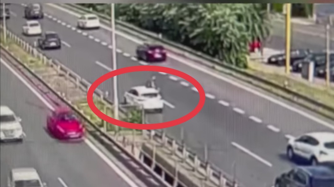 Bizarná nehoda na diaľnici: Motorkár zostal sedieť na streche osobného auta