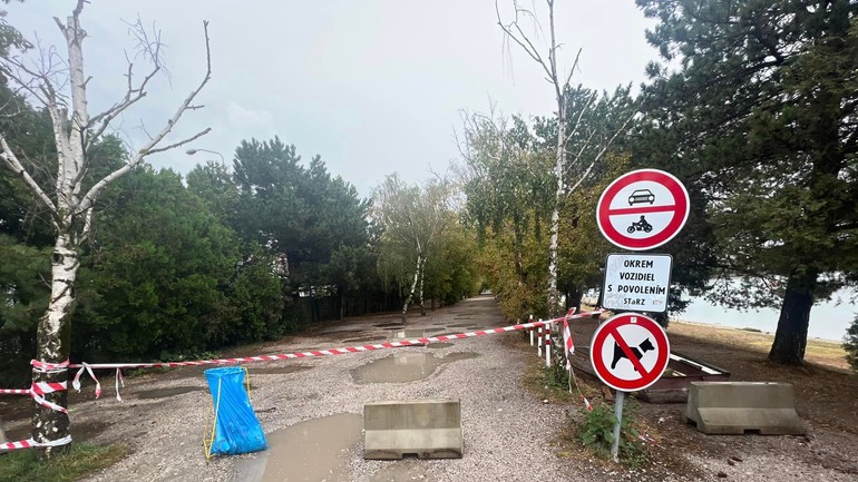 Ešte v piatok ste mohli zaparkovať tesne pri jazere Zlaté piesky zo strany od Cesty na Senec. Od dnešného poludnia ale musíte auto nechať na kapacitnom parkovisku pred hlavným vchodom. Miesto, kde doteraz autá parkovali, zablokovali betónové panely.