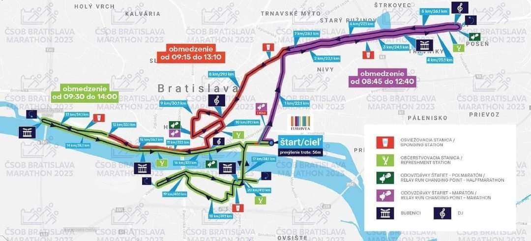 V nedeľu sa v čase od 08:30 h – 14:00 h dopravné obmedzenia dotknú najmä mestských častí Staré Mesto, Ružinov a Petržalka.