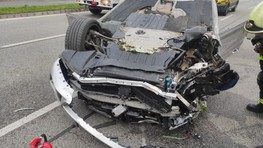 VIDEO Šialená nehoda: Vodič BMW poškodil 12 áut, štyri dopravné značky, betónový stĺpik a prevrátil sa na strechu