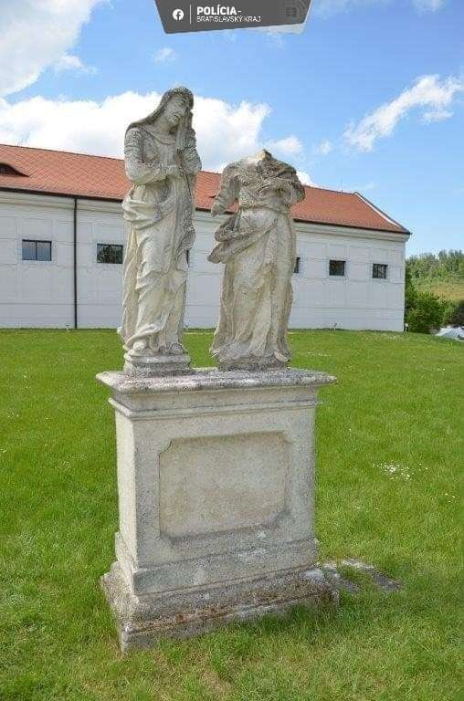 "Doposiaľ neznámy páchateľ poškodil sochu tým spôsobom, že ju uvoľnil z podstavca a následne jej odrazil hlavu, ktorú hodil do trávnatého porastu vo vzdialenosti približne 70 metrov," približuje polícia. Keďže ide o kultúrnu pamiatku zapísanú v ústrednom zozname pamiatkového fondu, škoda bola vyčíslená na 8000 eur.