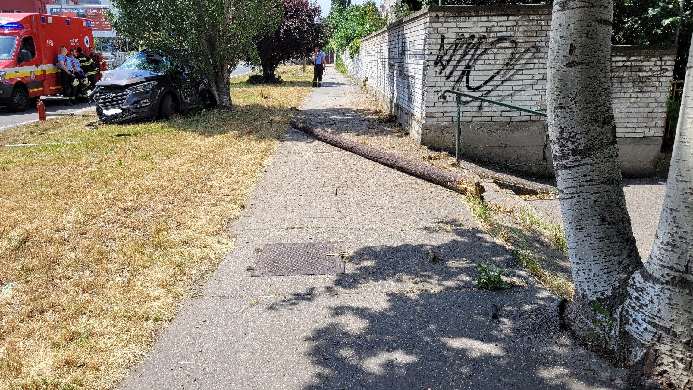 Drevená stĺp spadol na chodník, našťastie nikoho nezranil.