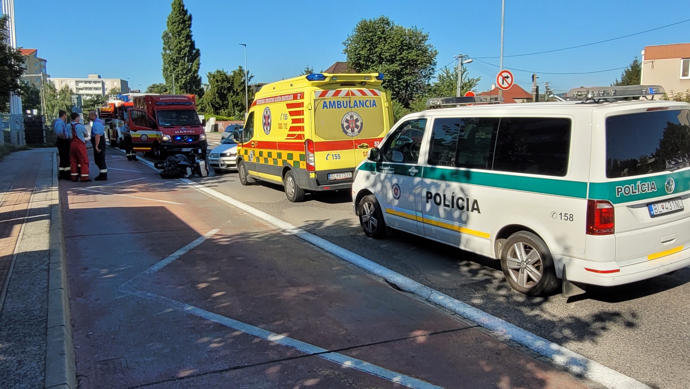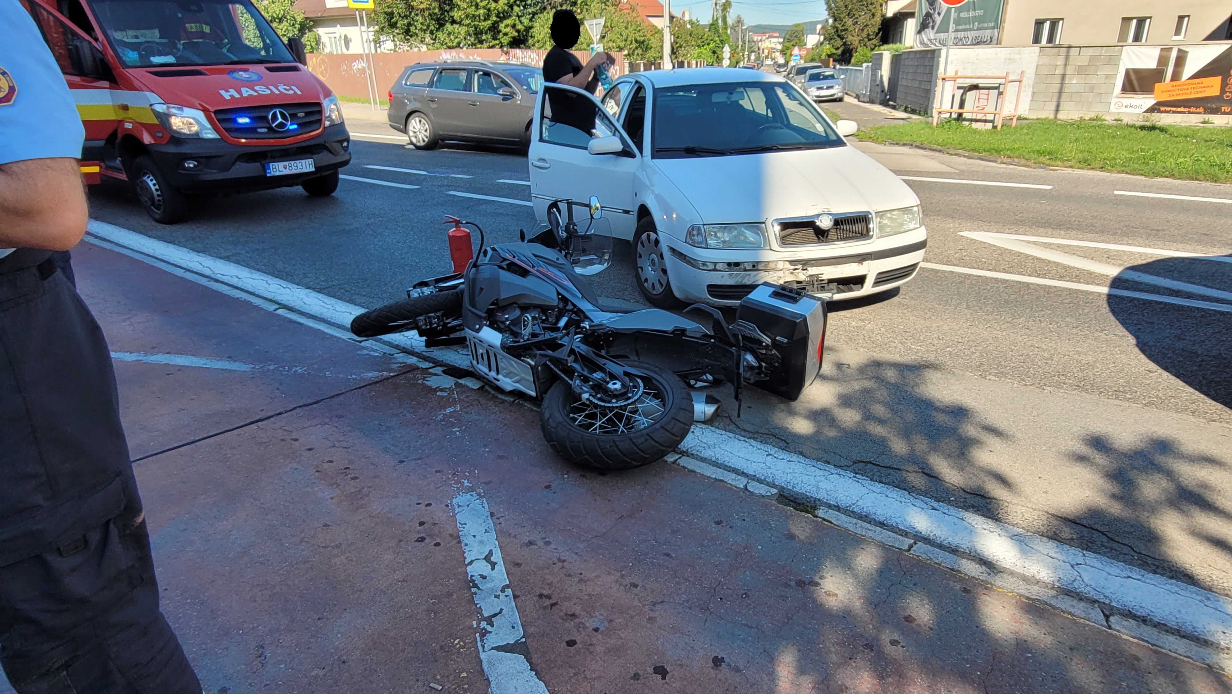 Vodič motorky bol už v sanitke, polícia nehodu vyšetruje.