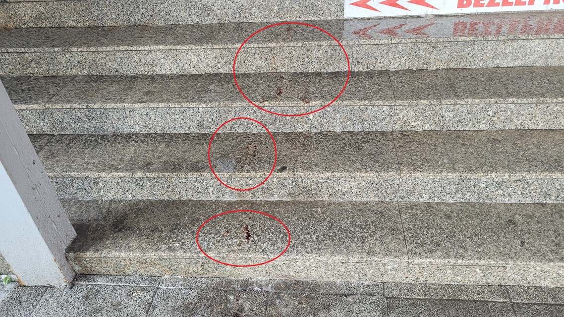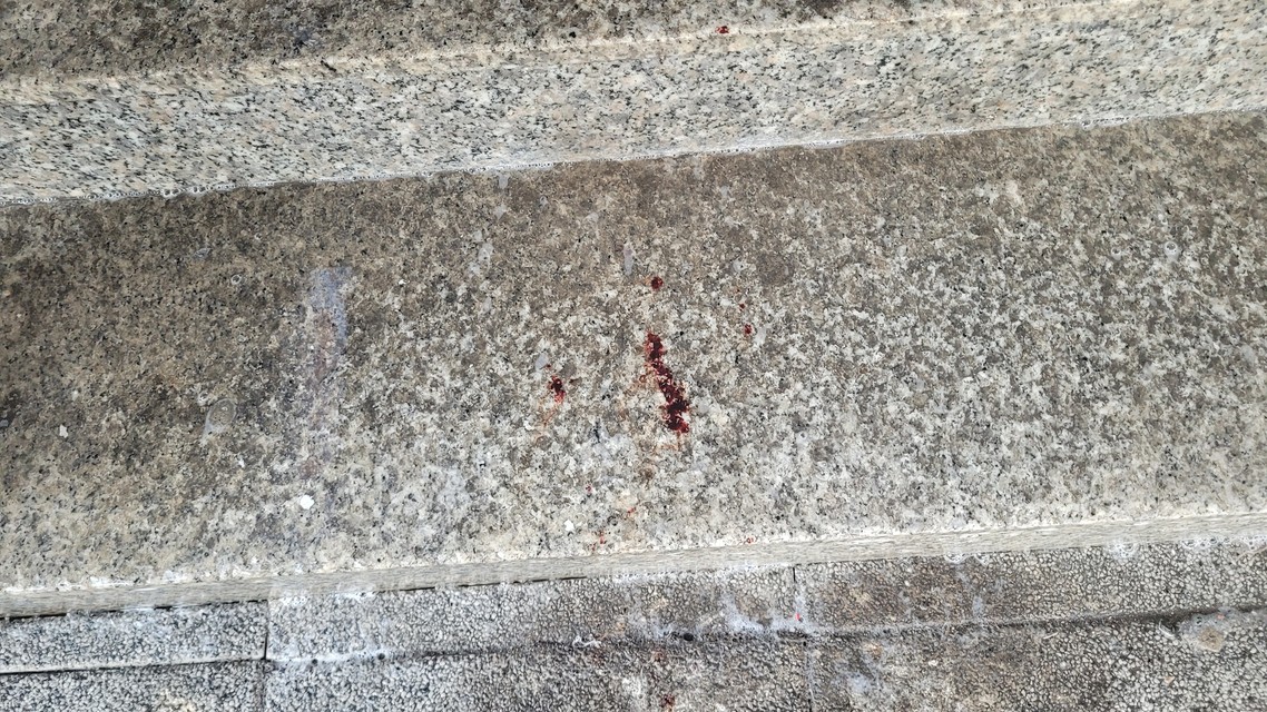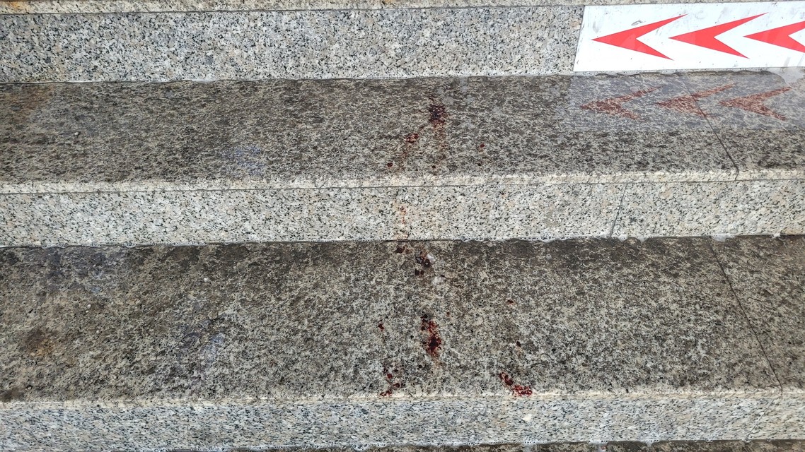 Zvyšky krvi na schodoch.