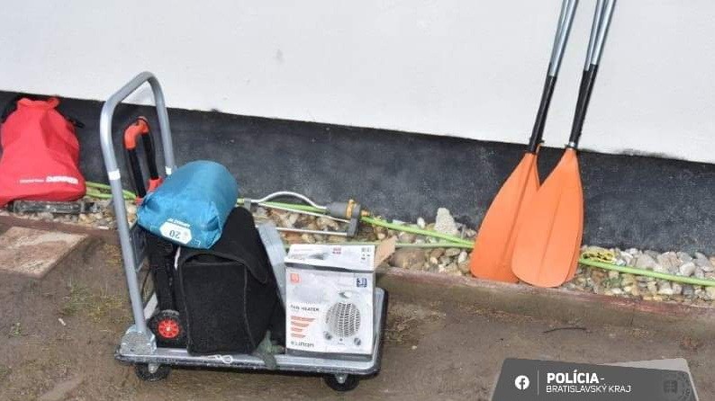 Vozík spolu s veslami na kajaky, potápačským vybavením, pracovným náradím a ďalšími vecami, ktoré 38-ročný Cyril L. z Bratislavy ukradol, bol priviazaný o lampu na Heyrovského ulici.
