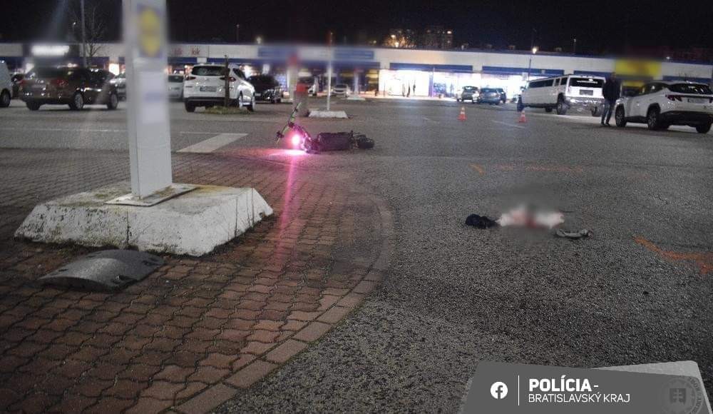 Vodič kolobežky utrpel zranenia, ktoré si vyžiadali jeho rýchly prevoz do jednej z bratislavských nemocníc k ošetreniu. Alkohol u vodičky na mieste zistený nebol.