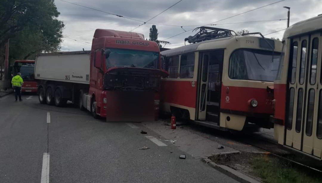 Nehodu, ktorá spôsobila aj dopravné obmedzenia, riešili v utorok popoludní bratislavskí policajti. Na Račianskej ulici došlo k zrážke kamióna s električkou.