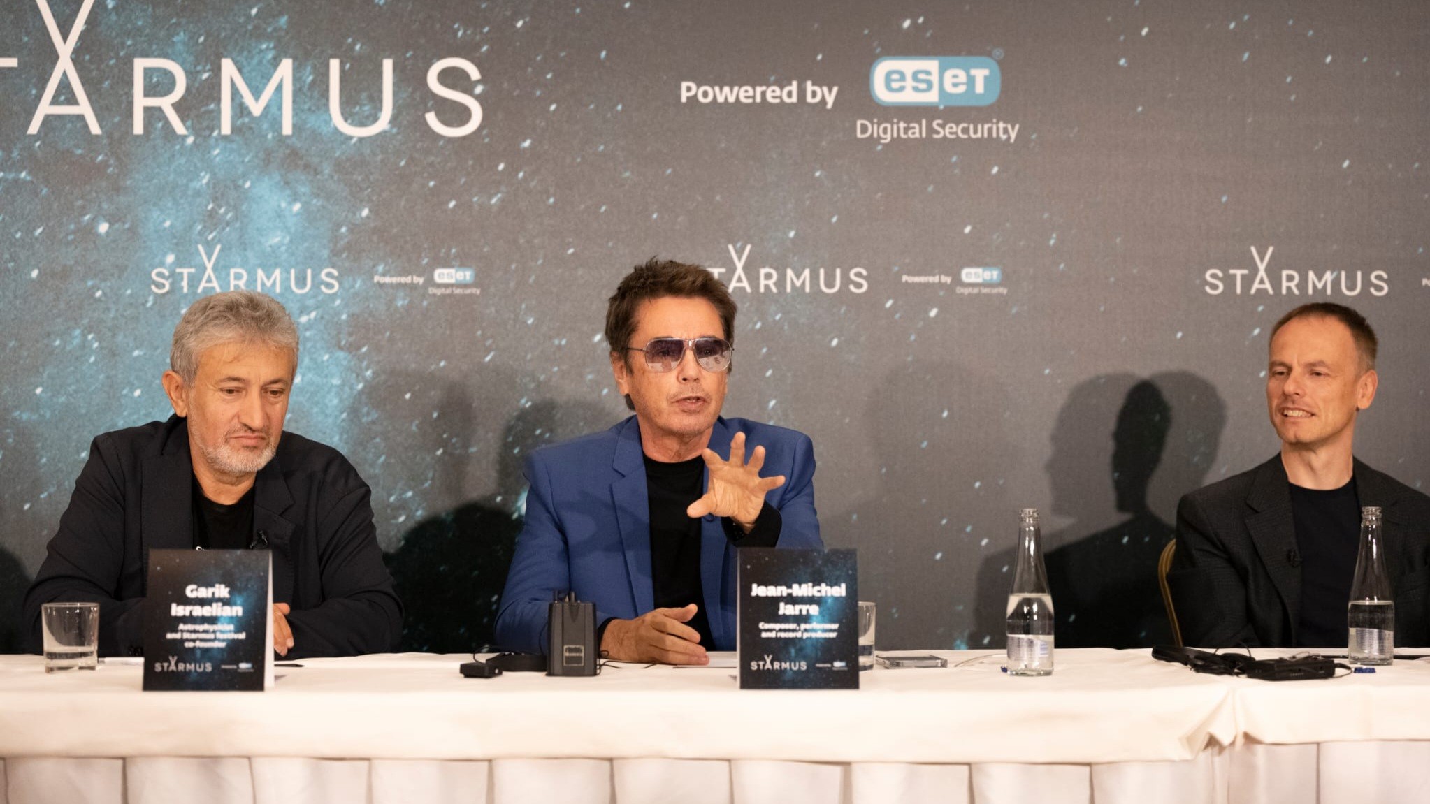 J. M. Jarre počas tlačovej konferencie v Bratislave.