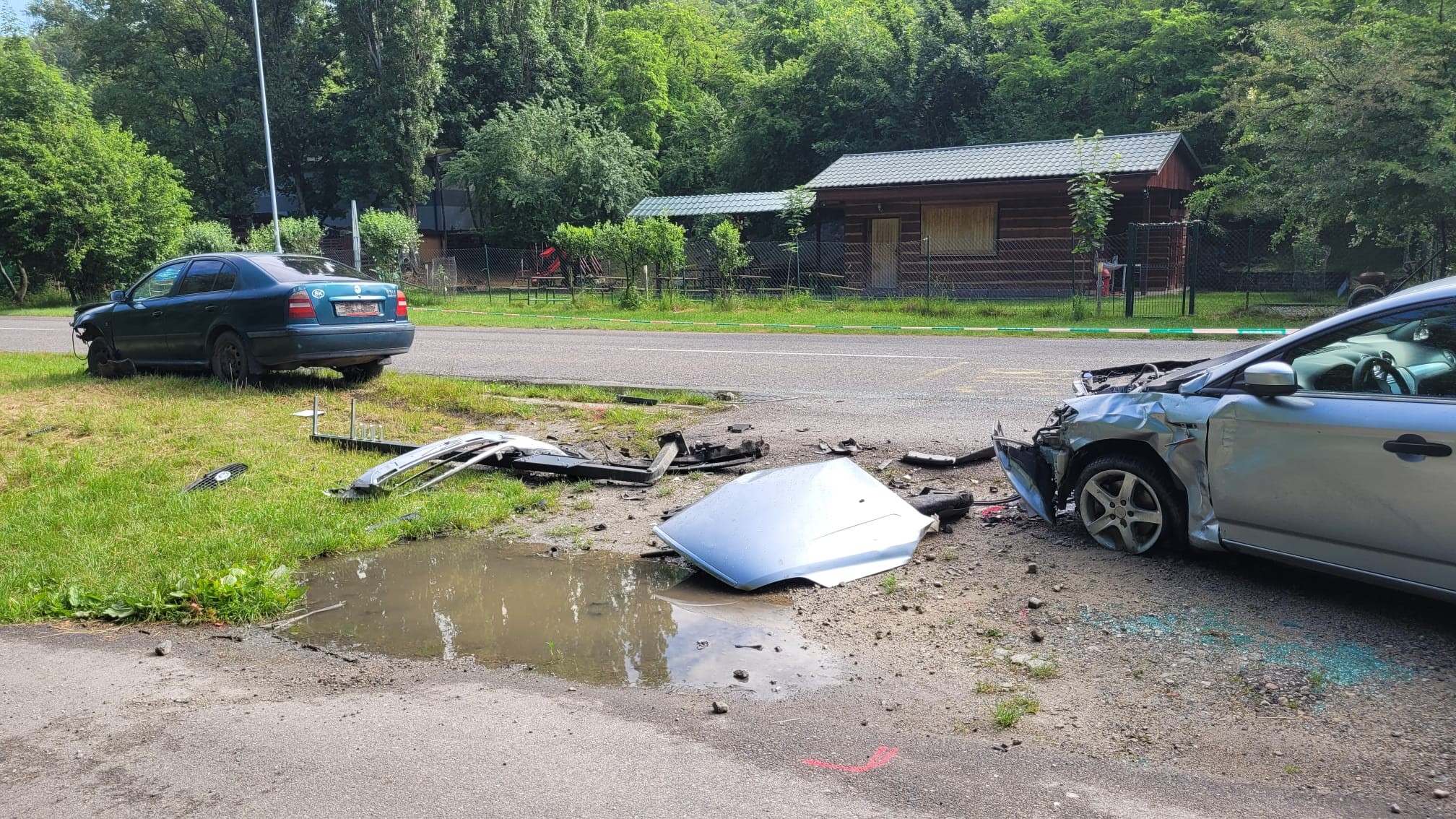 Octavia a Ford na mieste nehody, Peugeot tu už v čase našej prítomnosti nebol.