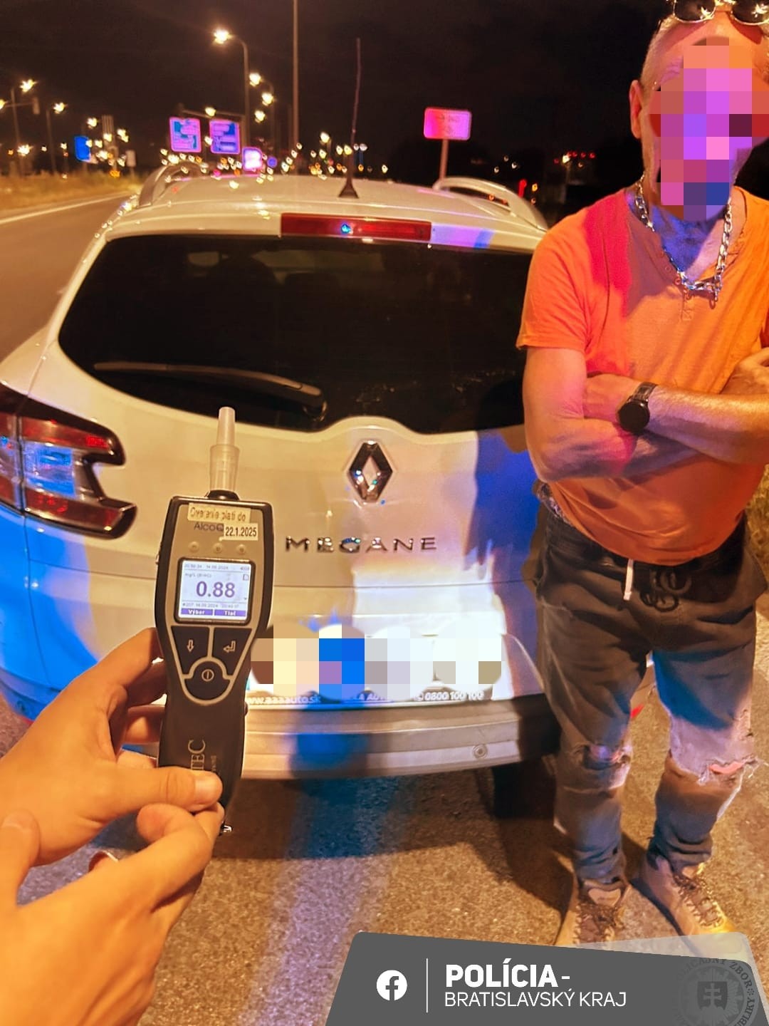 "Počas kontroly bol vodič podrobený aj vykonaniu dychovej skúšky na zistenie prítomnosti alkoholu v dychu, tá skončila s výsledkom 0,88 mg/l alkoholu vo vydychovanom vzduchu, čo predstavuje 1,83 promile. Zároveň policajti zistili, že vodič bol v priebehu minulého mesiaca postihnutý za jazdu pod vplyvom alkoholu, a to rozhodnutím Mestského súdu v Bratislave ktorým mu bol uložený zákaz činnosti viesť motorové vozidlá po dobu 4 rokov," informoval nás policajný hovorca Michal Szeiff.