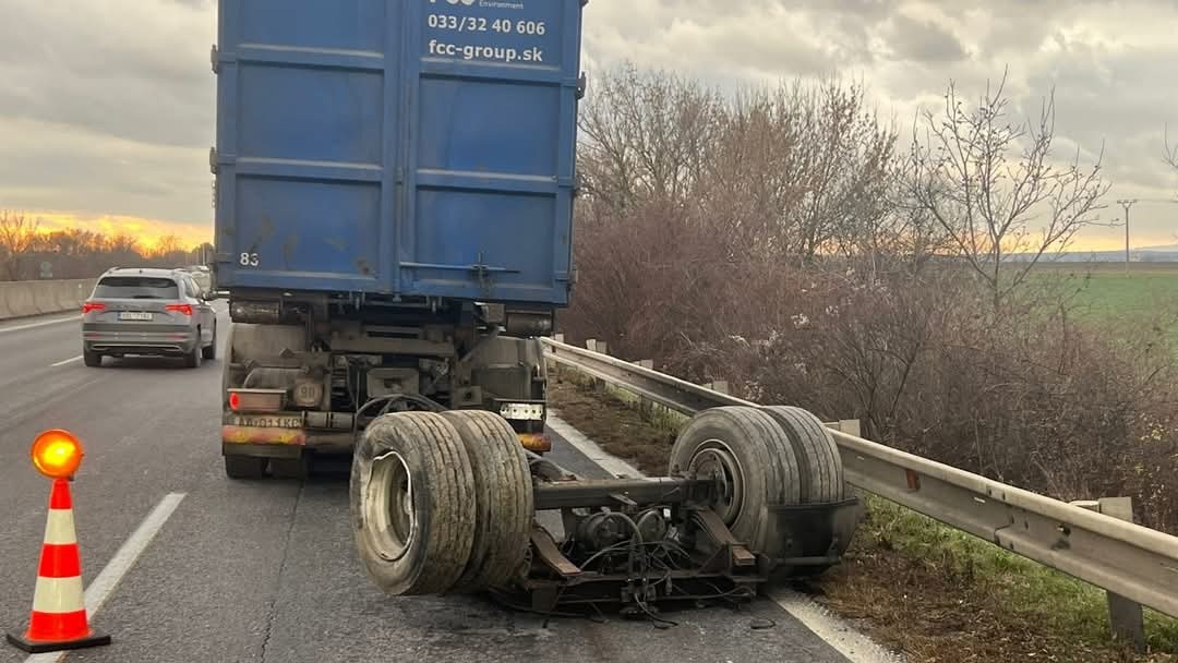 Z presne nezistených príčin tam došlo k odtrhnutiu nápravy návesu, ktorý následne prerazil zvodidlá a prevrátil sa do priekopy. Informoval o tom bratislavský krajský policajný hovorca Michal Szeiff.