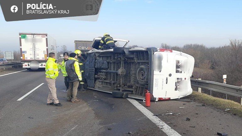 Nehoda na D2: Po zrážke s osobným autom sa dodávka prevrátila