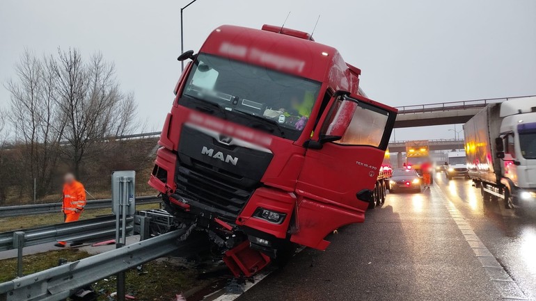 Pred Bratislavou vyletel na diaľnici kamión na zvodidlá